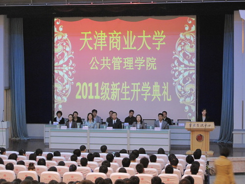 10 月16 日上午9 点,公共管理学院2011 级学生开学典礼在学术交流中心隆重举行。公共管理学院党委书记白洪文,院长孙钰,副书记刘均玲,副院长李增田、关兴丽,以及系主任、党支部书记出席典礼。辅导员、各班班主任、班助及全体2011级学生参加典礼。开学典礼由辅导员孙瑶老师主持。