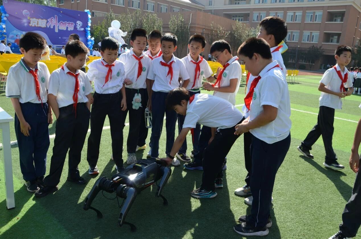 日前,天津市西青区京师大西营门实验小学举办“第六届京鲸科创节”。我校机械工程学院爱心支教队与科普志愿队的6名队员携智能机器人及机器狗等装备走进校园,为孩子们带来了一场生动的科技盛宴。