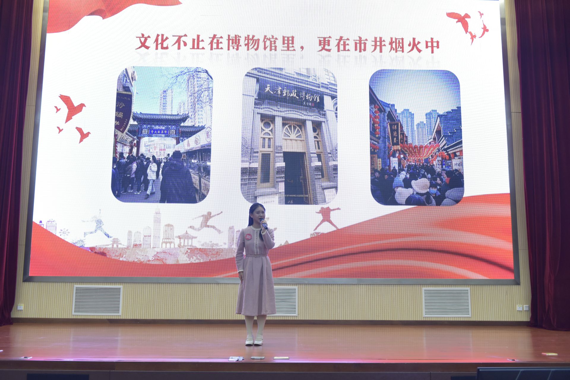 谢思涵同学以《烟火照文脉,匠心筑津魂》为题,围绕《中国传统文化精神》一书,深情地表达了对津沽文化传承与创新的深刻理解。她的演讲从天津的“烟火气”着手,于细微处见真情,以“匠心精神”贯穿始终,结合个人经历与真实感受,生动地阐释了天津文化的深厚底蕴与时代意义。她的现场表现情感充沛、语言流畅、立意深远,充分展现了对天津传统文化的热爱与传承,深深打动了评委与观众,彰显了我校学子坚定的文化自信与积极向上的精神风貌。