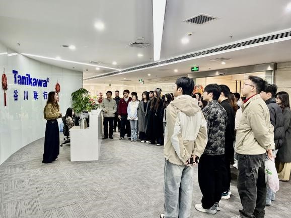 10月23日,天津商业大学24级招商引资实验班新生及工商管理系教师李星北、辅导员董凤章老师一行,走进谷川联行天津工区,开启了一场兼具认知深度与实践价值的职业探索之旅。此次参访不仅打破了高校课堂与招商实战的壁垒,更以沉浸式体验为学生搭建起理论衔接产业的桥梁,成为深化产教融合的生动实践。