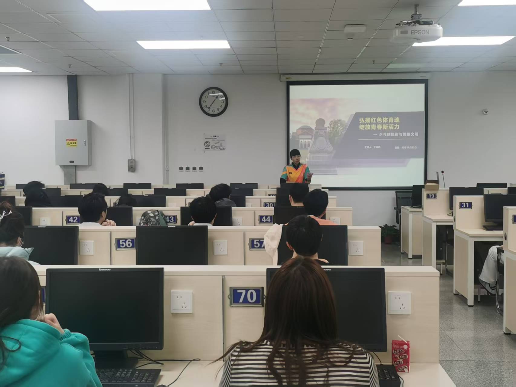 此次党课通过“实践体验+专题讲座”的形式,为参与学习的学员带来了一场别开生面的“体育思政”教育活动。首先开展了“身边运动‘微体验’”,学生们以积分制规则参与体感运动、跳绳、乒乓球等日常生活中常见的运动项目,在轻松活跃的氛围中感受体育魅力,激发锻炼热情。随后,开展了“弘扬红色体育魂 绽放青春新活力——乒乓球规则与网络文明”专题讲座,此次讲座由清华大学体育教研部副教授王海燕主讲,围绕乒乓球运动的历史沿革、竞赛规则及其蕴含的拼搏精神展开深入讲解,并结合案例解读了如何做好体育文化在网络传播中的正向引导。通过兼具专业性与思想性的授课,为学院学生上了一堂生动的“体育”党课。