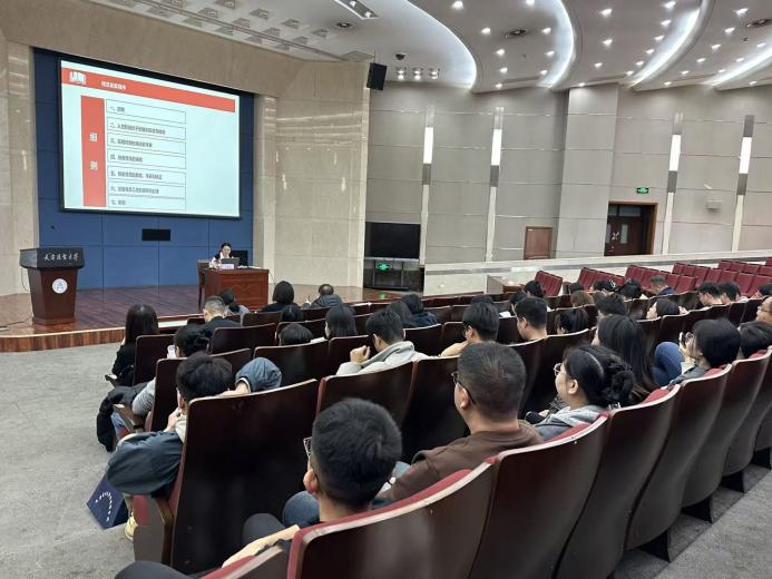 王雅茹以《严格落实〈细则〉,规范做好发展党员工作》为题,围绕发展党员工作有关规定文件与全年发展党员工作时间安排进行系统梳理与细致解读,有效帮助学生党支部书记进一步规范、高效开展学生党员发展工作。