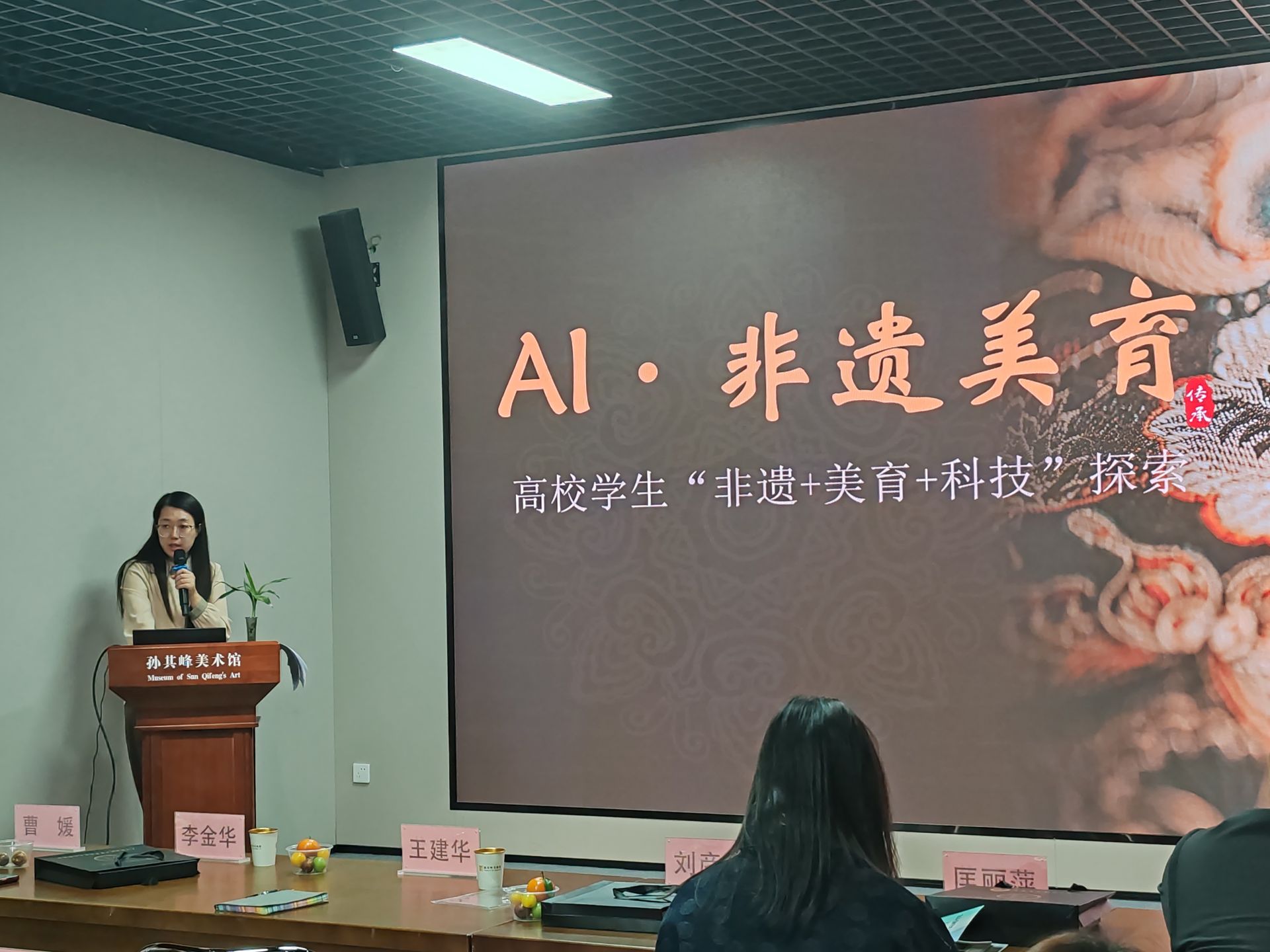 开幕式上,艺术学院院长王俊琪致辞。绘画专业教师范佳、柳称、王超、范姁晗和部分学生参加了开幕式。在专题研讨环节,我校艺术学院教师范姁晗以“融合・智造——高校美育的非遗数智化创新传承”为题作报告,结合AI技术背景下的非遗实践案例,深入阐释“非遗+美育+科技”融合发展的创新策略,为现场师生带来启发。