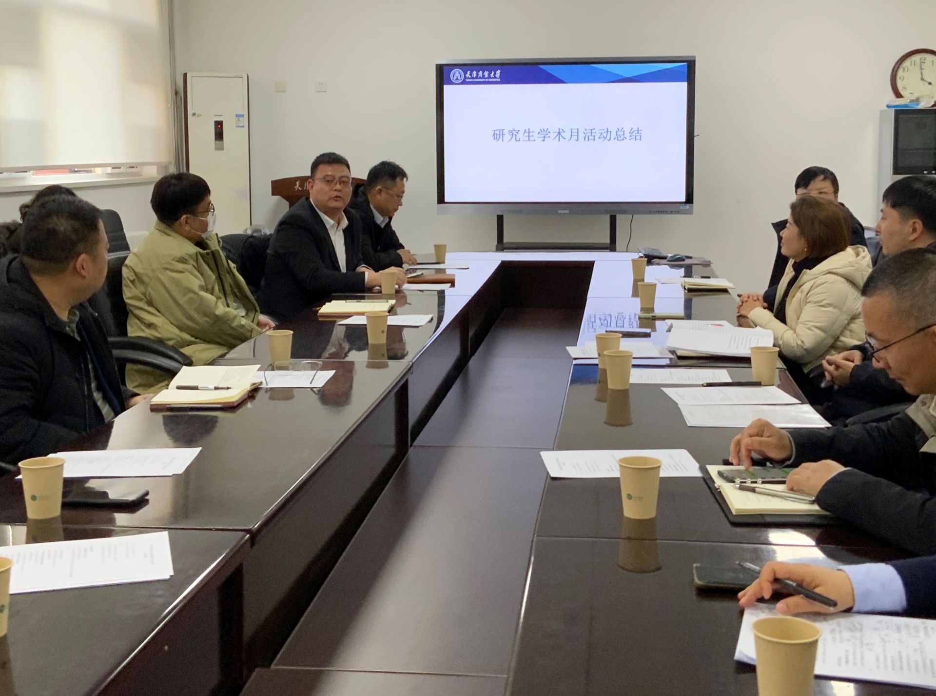 随后,会议对研究生招生考试工作进行了相关通报与安排。针对即将到来的研究生招生考试工作,会议传达了上级部门的相关精神与要求,强调必须严守招生纪律,优化自命题工作流程,加强考务组织与安全保障,确保招生工作的公平、公正、科学、规范,为选拔优质生源筑牢基础。