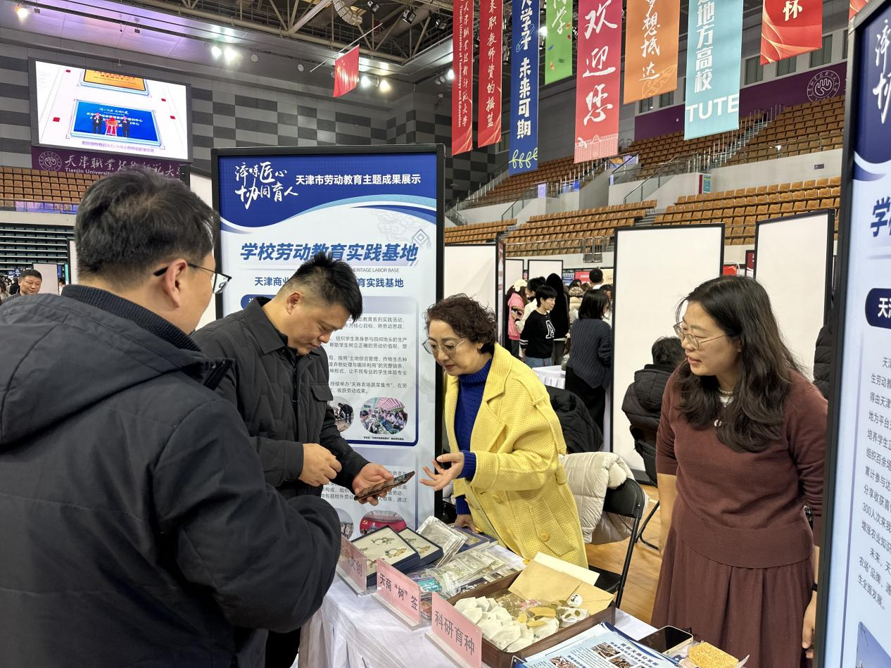 12月9日,由天津市教育委员会体美劳教育处主办,天津市劳动教育教学研究中心、天津市劳动教育师资培养培训中心、天津职业技术师范大学体美劳教育中心承办的天津市劳动教育主题成果展示观摩活动,在天津职业技术师范大学体育馆举行。在本次展示观摩活动中,学校通过专题展板、实物展示与现场讲解相结合的方式,系统介绍了学校以“天商农场”为特色的劳动教育实践育人体系。学校教务处、后勤处、学工部等相关负责同志参加。