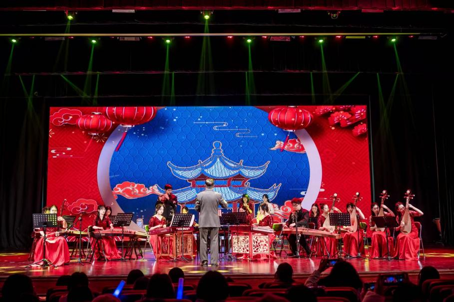 紧接着,民乐小合奏《彝族舞曲》以其优美抒情、节奏鲜明的特色,带领观众领略了少数民族音乐的独特风情,宛若一股清泉,流淌出和谐美好的生活图景。