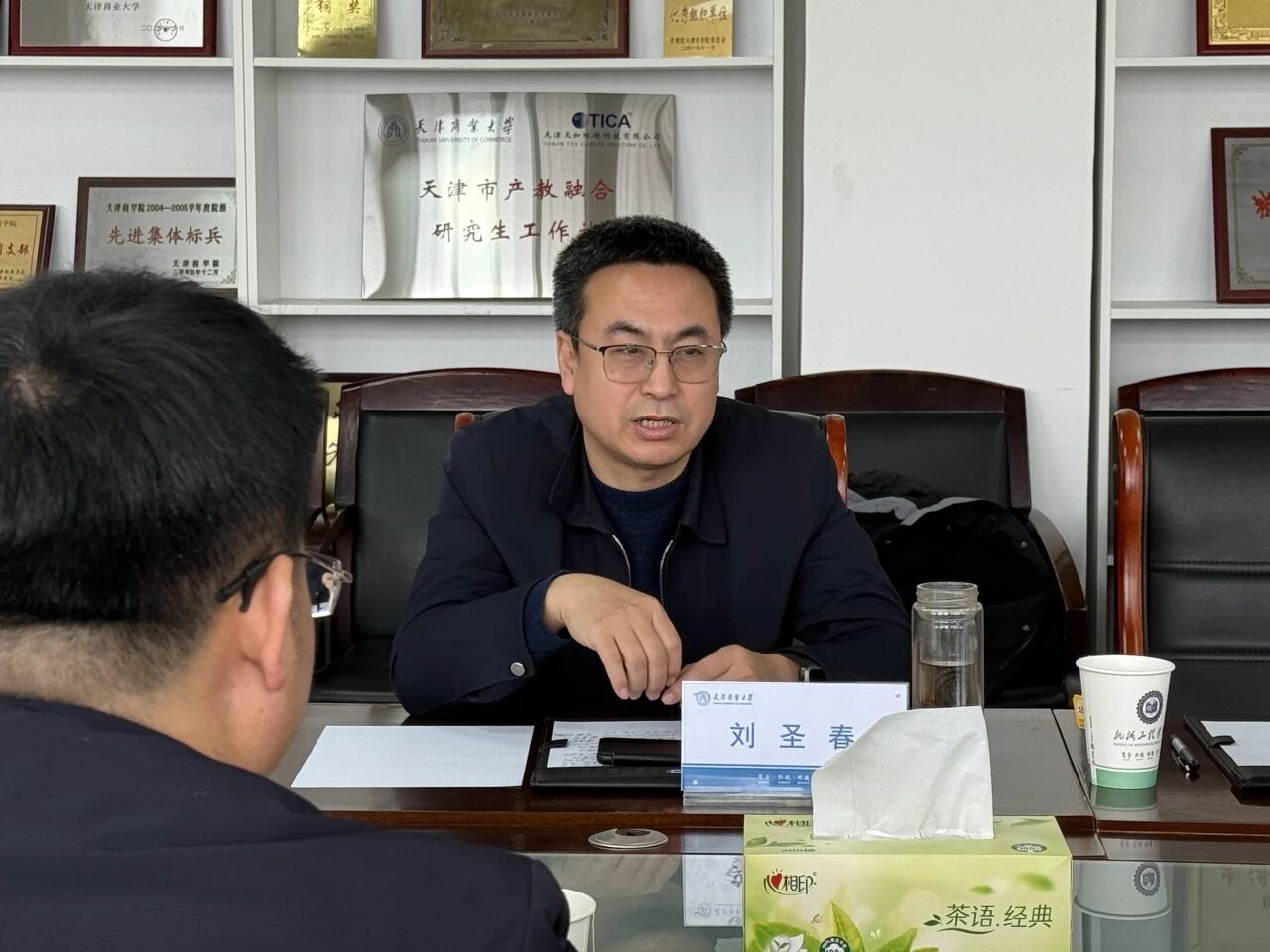 双方围绕深化科研合作、优化人才引育等议题举行专题座谈会。会上,刘圣春对魏丰君一行的到来表示热烈欢迎,从师资队伍建设、人才培养特色、专业学科布局、科研平台搭建等方面介绍了学院的发展情况,分享学院办学经验与专业建设思路。