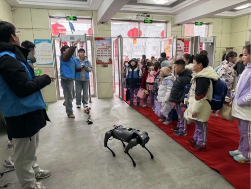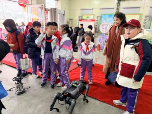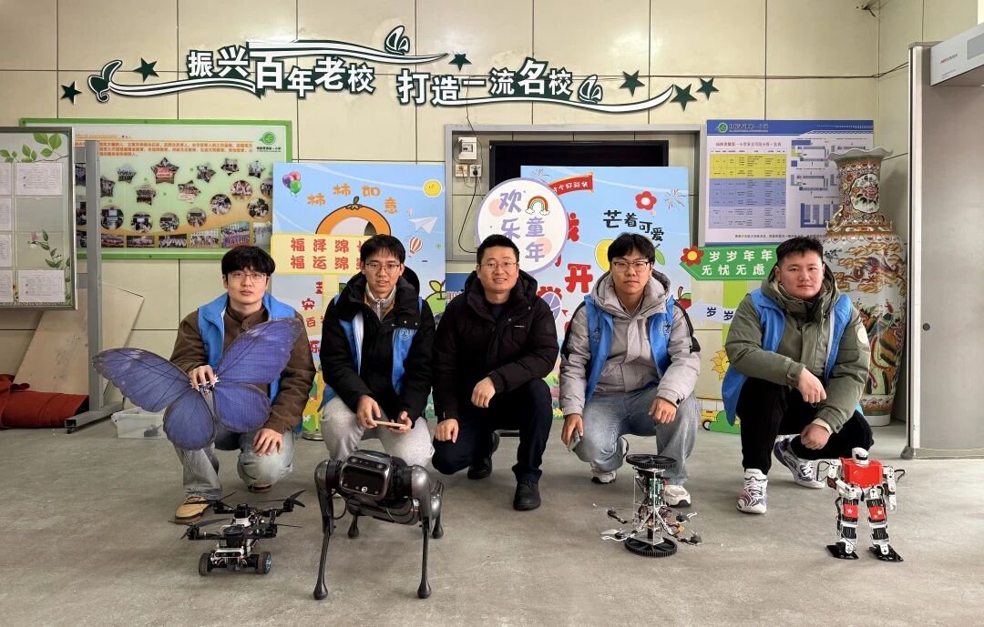 活动现场,志愿者们充分发挥专业优势,详细讲解不同机器人的功能及应用场景,重点介绍了搜救机器人和两栖巡检机器人在危险救援、环境巡检中的作用,帮助小学生了解到如何依靠科技守护安全。机器狗灵活完成奔跑、跳跃、作揖等动作,仿生蝴蝶机器人模拟真实飞行姿态,跳舞机器人跟着音乐节拍完成连贯动作。志愿者指导学生通过手机控制机器狗,耐心解答学生提出的各类问题,分享自身在大学期间学习科技知识、参与创新实践的感悟,引导孩子们主动思考、热爱科学。