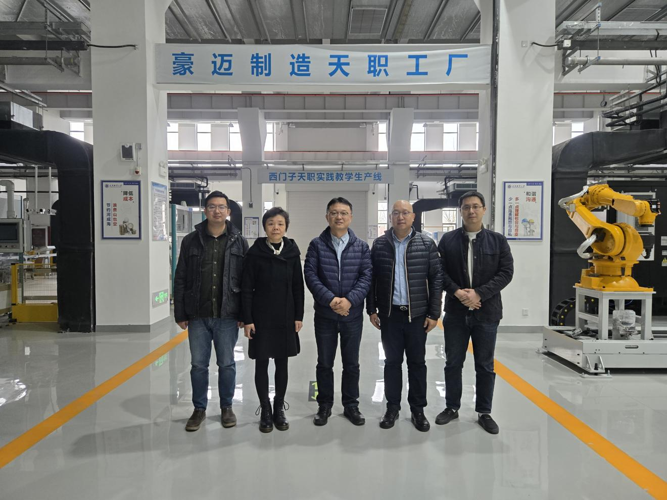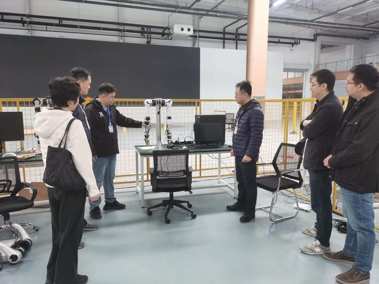 在天津天星科技发展有限公司,团队深入了解企业自主研发的双臂机器人以及具身智能相关产品,实地观摩了从设计研发到整机装配的全流程生产环节。企业负责人展示了具身智能机器人在运动控制、环境感知、智能决策等核心技术领域的创新成果,双方就实践课程开展、校企合作人才培养、实习实训等合作前景展开深入交流。