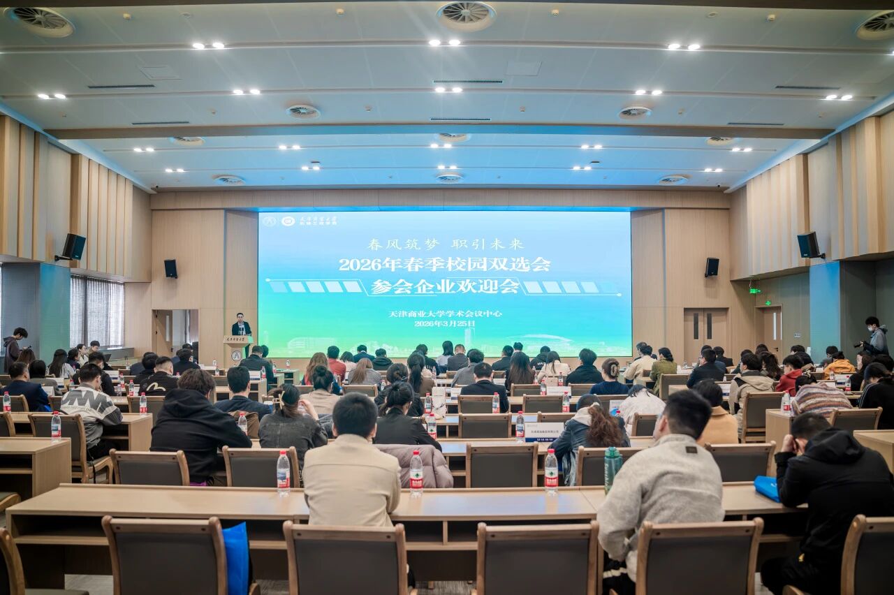 3月25日上午,机械工程学院在学术会议中心第一报告厅举办2026年春季校园双选会企业欢迎会。天开集团企业招商部副部长彭梦千、国际事务部总监肖天翼,天津市国际科技合作协会副秘书长雷泽琦,南开区投促局新兴产业科科长陈泽龙、东疆综合保税区新经济促进局副局长周骥、现代服务创新科科长王娈,浙江英诺绿能科技有限公司董事长顾众,冰山冷热科技股份有限公司研发部部长周丹,浙江同星科技股份有限公司管理部部长张巧、学院全体领导班子以及受邀企业代表共100余人参加会议。会议由学院院长刘圣春主持。