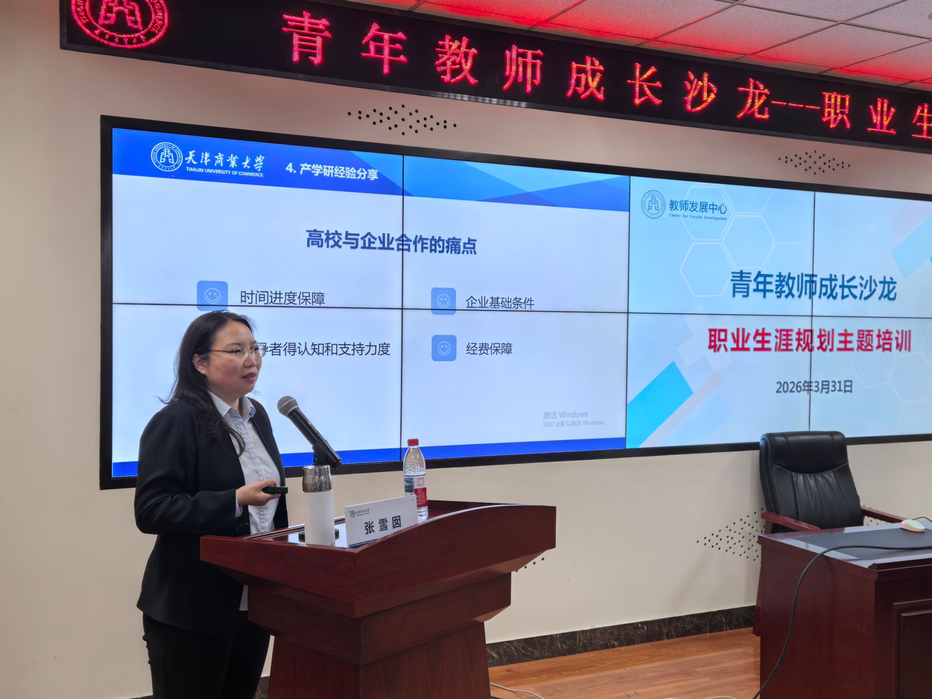 为助力青年教师明晰职业发展定位、理清成长路径,进一步提升教师职业规划能力与综合素养,3 月 31 日,教师发展中心举办 “青年教师成长沙龙” 职业生涯规划主题培训。本次培训以 “直面挑战,攻坚克难 —— 做好职业发展规划” 为主题,特邀国务院特贴专家、天津市有突出贡献专家,我校机械工程学院张雪囡博士担任主讲人,天商青年学者、各学院(部)青年教师参与培训。