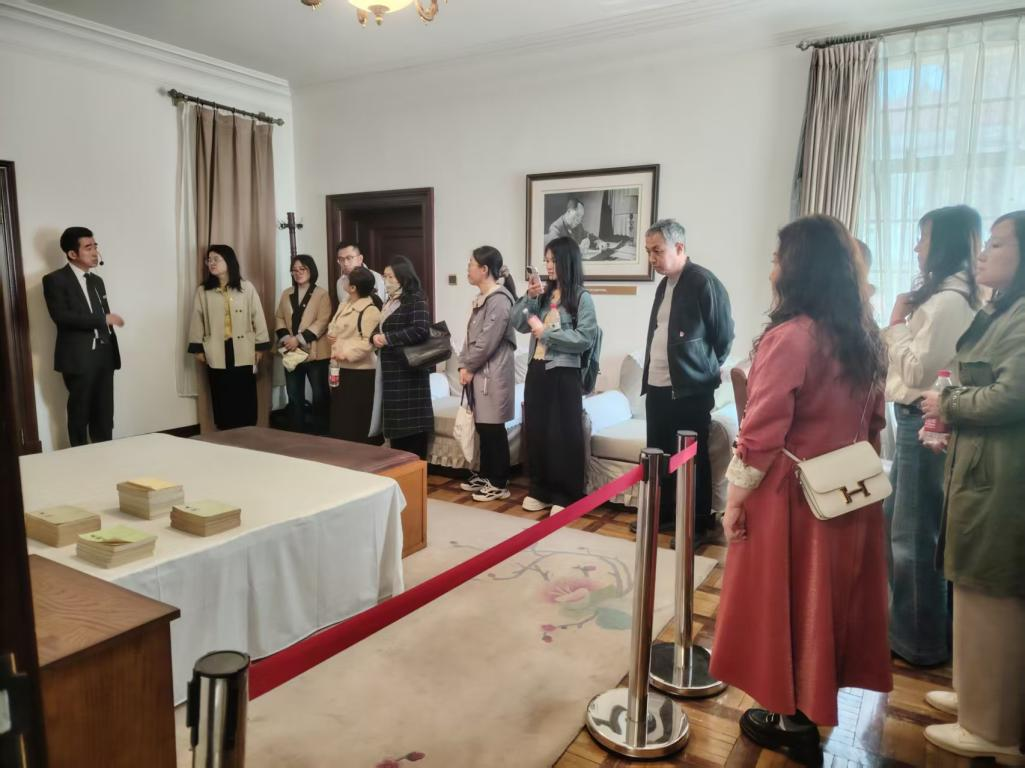 活动现场,润园馆长张大林亲自担任讲解员,以“行走+聆听+互动”的多维度体验形式,为党员教师们带来了一堂生动鲜活、入脑入心的现场党课。馆长带领大家依次参观毛主席卧室等复原场景,党员教师们驻足凝视照片、书信等珍贵历史文物,从一件件实物、一个个细节中,深切感受老一辈革命家艰苦朴素的生活作风和手不释卷的学习精神。