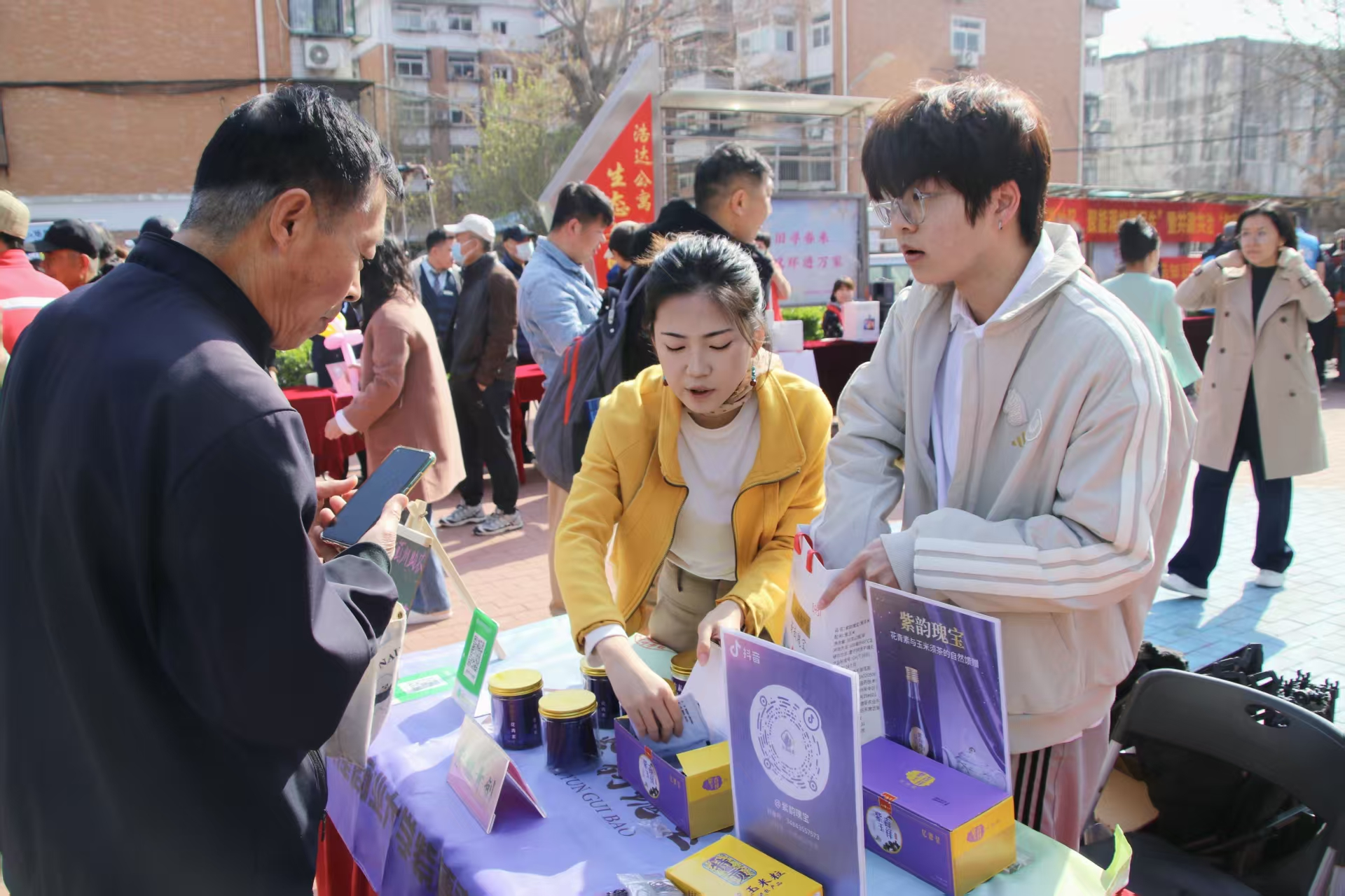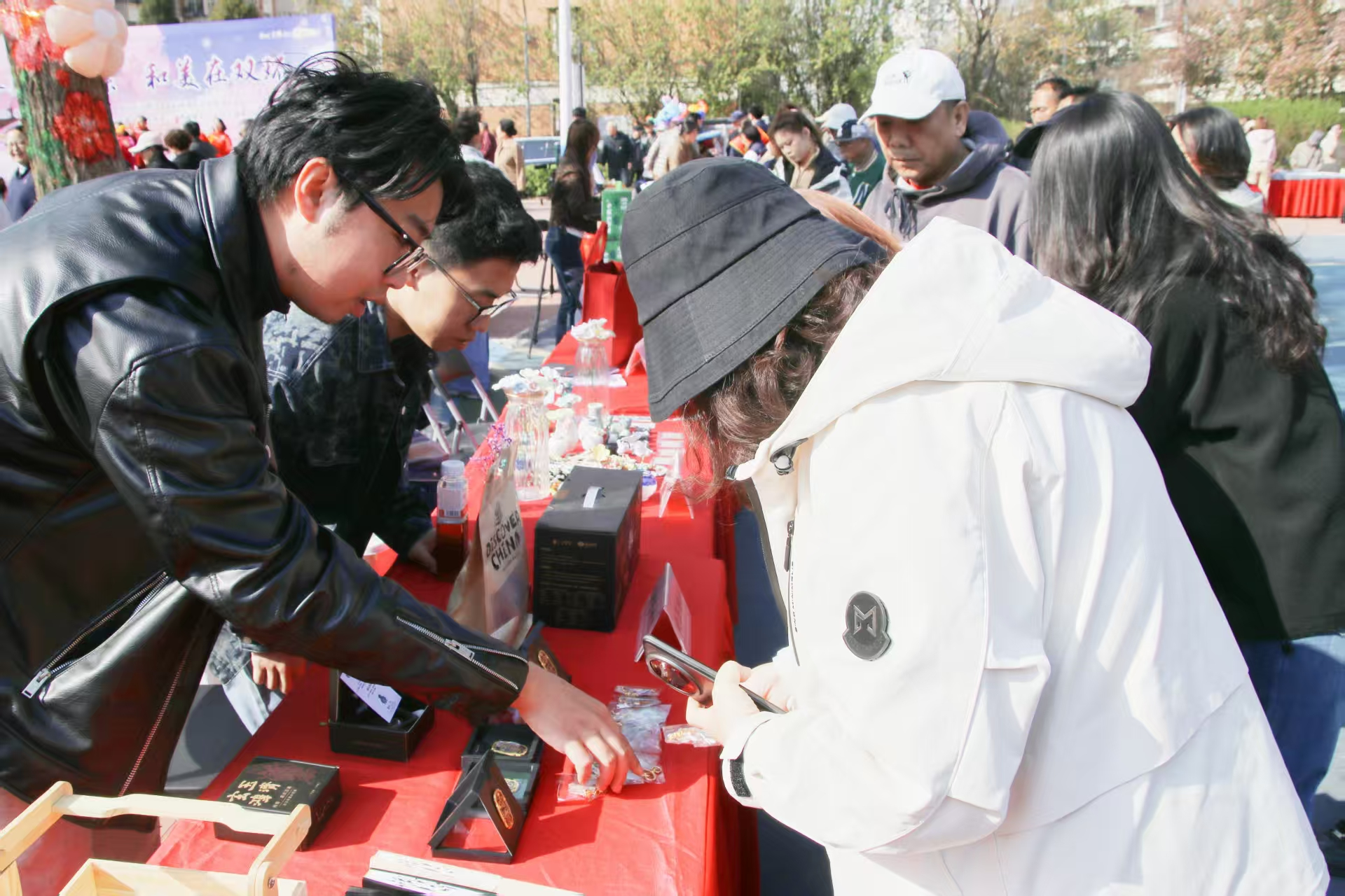活动现场花影摇曳、笑语盈盈,辖区居民齐聚一堂,近距离感受我校创业学子的青春活力。此次亮相的紫穗青创、汉塞明风、磁州窑事、玄玉鸿济四支大学生创业团队各展所长,成为活动现场的青春亮点。紫穗青创带来最新花青素系列创意展品,以创新理念吸引居民驻足观看;汉塞明风打造沉浸式传统文化体验,让群众在互动中感受传统文脉魅力;磁州窑事现场演示非遗磁州窑技艺,推动非遗文化走进基层、贴近群众;玄玉鸿济推出传统与现代融合的创意产品,彰显青年创业者的创新实力。各团队的表现,集中体现了我校创新创业教育的丰硕成果。