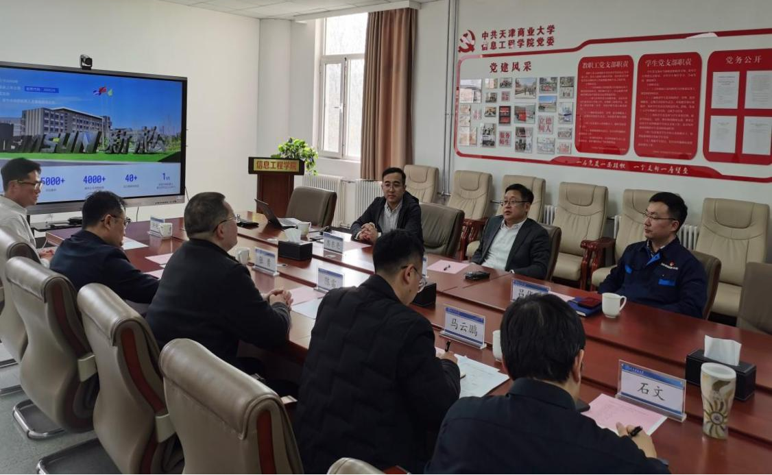 4月1日下午,天津新松机器人自动化有限公司总经理高松、战略发展总监吕华楠、销售工程师骞东亮一行到访信息工程学院,围绕深化校企合作、推进产教融合开展专题座谈。学院领导班子成员、专业负责人及青年骨干教师参与本次交流。
