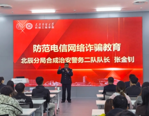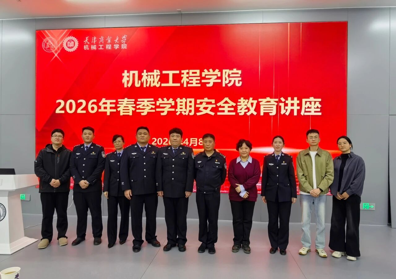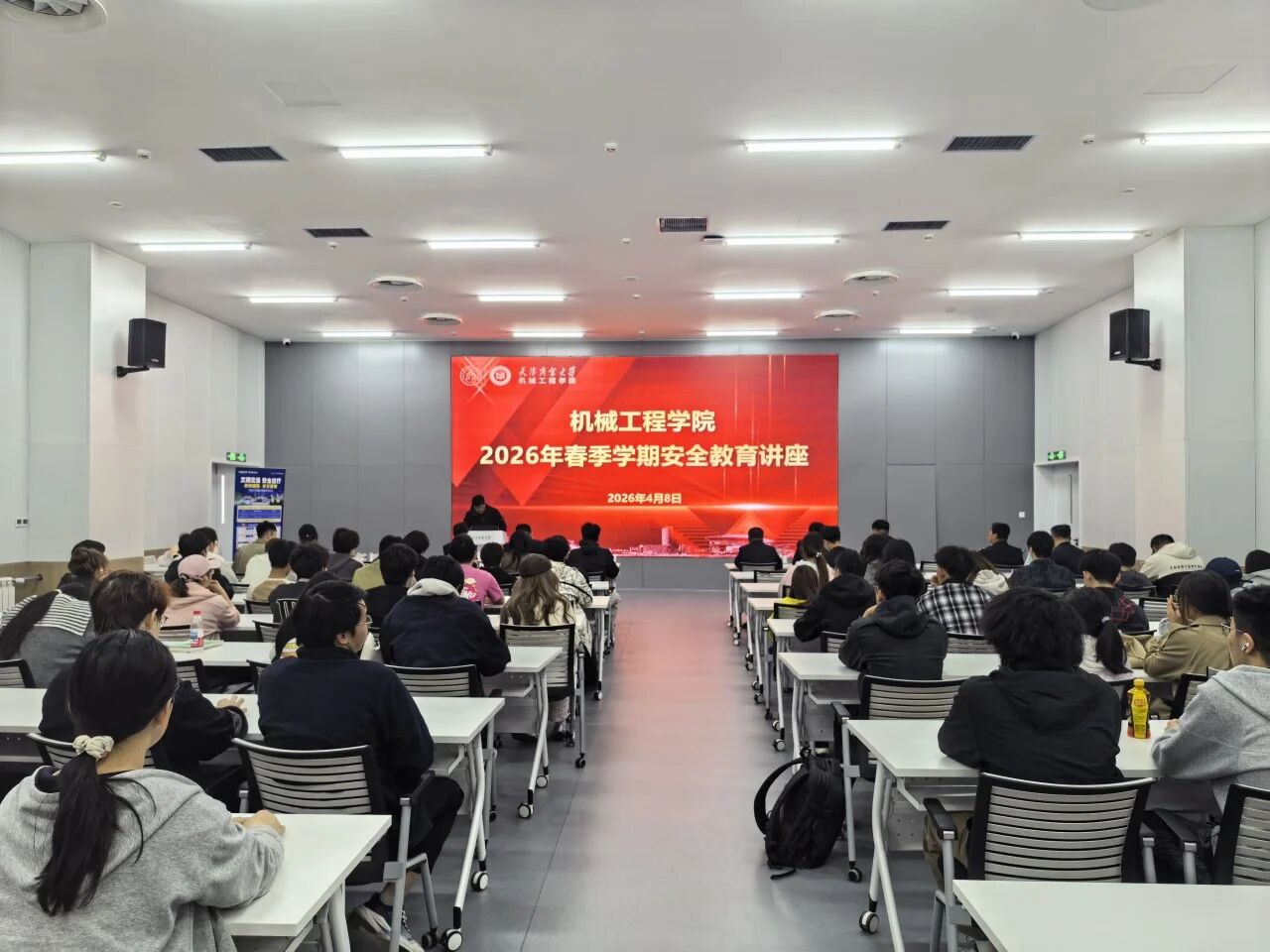 4月8日下午,机械工程学院在学术会议中心第二报告厅举办2026年春季学期安全教育专题讲座,邀请公安北辰分局合成治安警务二队队长张金钊、交管支队交通安全监管大队队长李晨、刑侦大队一级警长杨洪香担任主讲,公安北辰分局交警支队副支队长果继、交管支队交通安全监管大队副队长李禹晨等出席活动。学院党委书记张莹、党委副书记王凯,各年级辅导员及主要学生干部120余人参加。