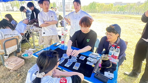 主会场同步设置社团风采展示、创意手印打卡、现场幸运抽奖等特色互动区域。各学生社团通过文创产品、体现社团特色的互动游戏彰显社团魅力。参与学生在各具特色的文化互动中感受丰富多彩的校园文化,经现场学生投票,羽毛球社荣获“最佳人气社团”。