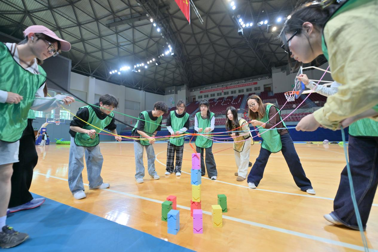 活动以趣味热身拉开帷幕,有效活跃现场氛围,拉近彼此距离。同学们随机分组建队,完成团队文化建设后,依次参与毛毛虫竞速、合力筑塔、飞盘投篮等团队协作项目。大家相互配合、凝心聚力,在趣味挑战中释放压力、提升协作能力,收获满满的温暖与正能量。
