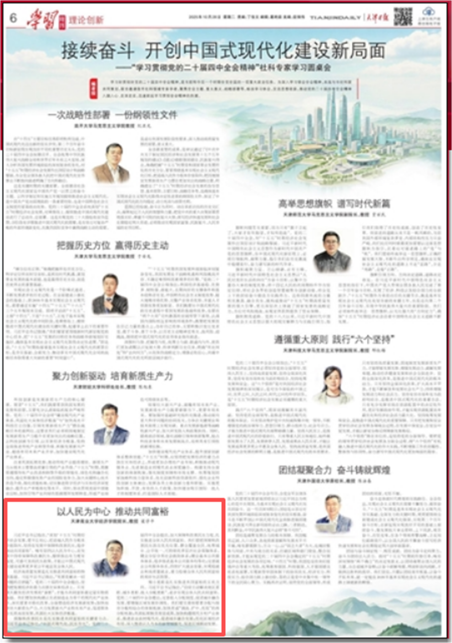 10月28日,《天津日报》刊发我校经济学院院长梁学平教授在“学习贯彻党的二十届四中全会精神”社科专家学习圆桌会观点。
