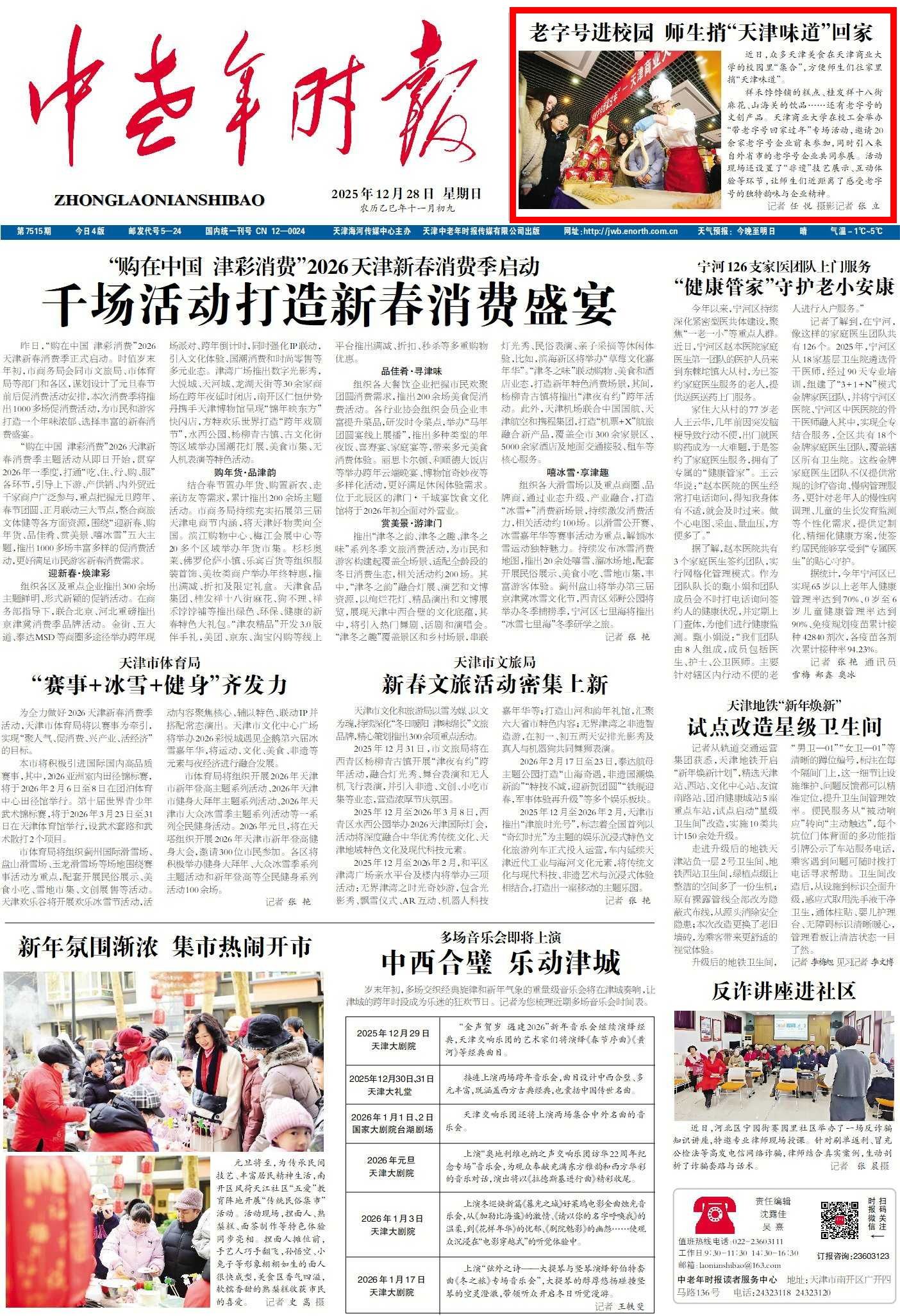12月28日,《中老年时报》、《今晚报》、津云客户端报道我校举办“带老字号回家过年”专场活动。