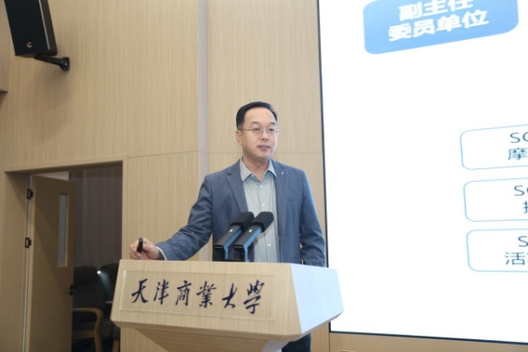 天津商业大学党委副书记、校长、主任委员陈冠益作会议报告