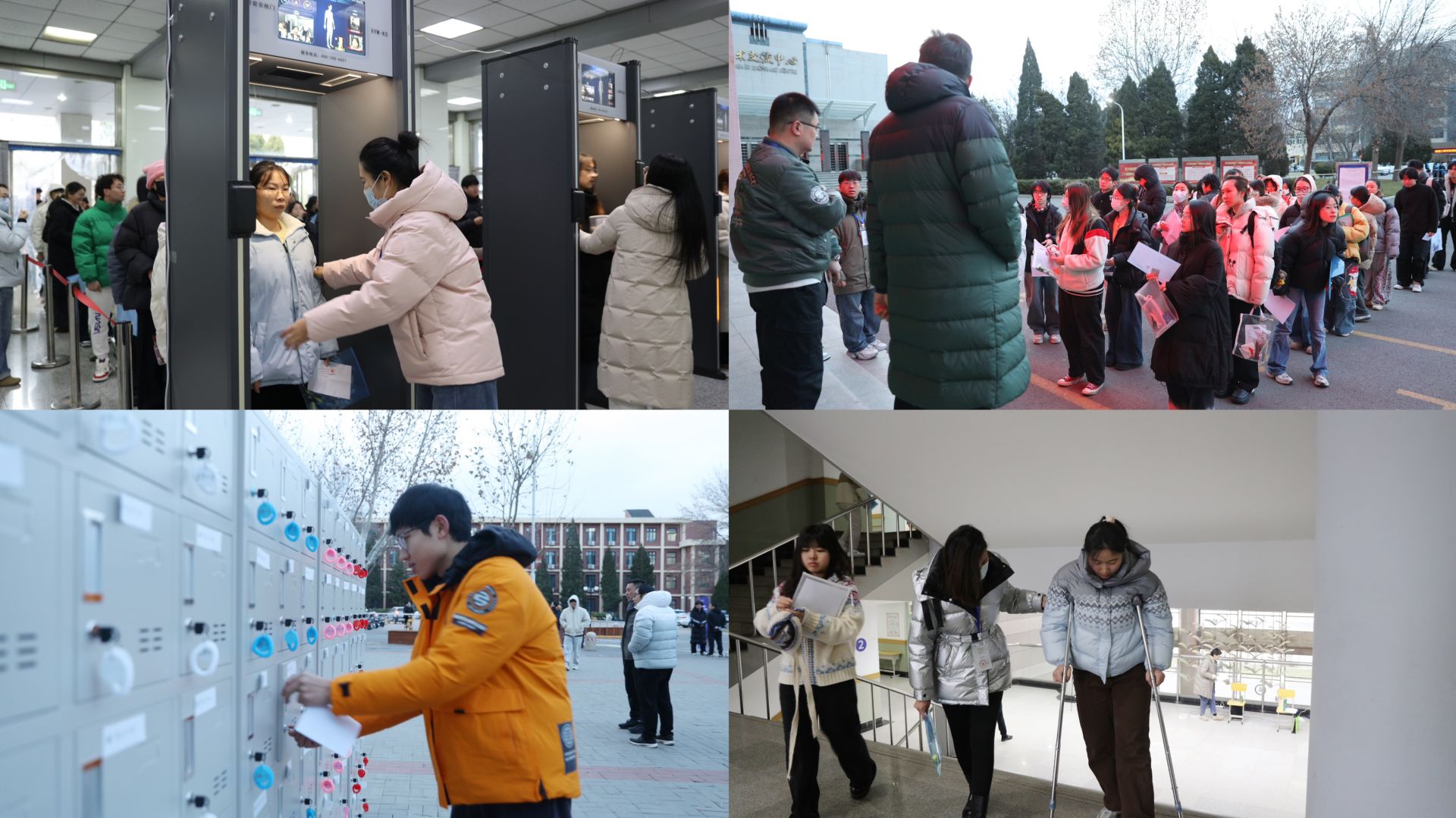 构建“五位一体”组考服务体系,细化候考服务,设立考生休息室,供校外考生避寒备考,在休息室、候场区为考生提供暖贴、姜茶、免费热汤等“暖心包”;优化流程体验,实现“智能安检”“人脸识别验证”双进楼,减少考生室外等候时间;深化个性化便捷化服务,发布“考研驿站“系列推文6篇,回应考生关心、关切;设立非考试物品存包柜供校外考生存放非考试物品,在岔路口、考试楼等重点点位设立路标、地贴、指示牌,安排工作人员做好指引服务;强化应急管理,在考场办公室配备应急药品、文具、糖果等物资,应对考生个性化需求和突发情况;净化考试环境,加强与属地相关部门的对接协作,营造安定温馨的考试环境。