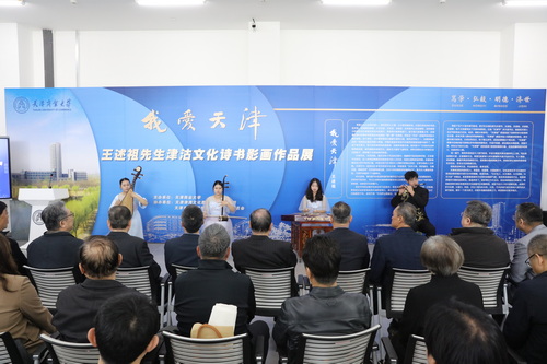 据悉,“我爱天津”王述祖先生津沽文化诗书影画作品展,首期于2025年11月22日在天津津湾广场“津湾里”举办,第二期在我校举办。本次展览共展出展品125幅,其中王述祖作品包含津门竹枝词书法作品58幅,由“天津节、天津饭、天津地、天津景、天津事”五大主题构成,以竹枝词为载体挖掘城市民俗、饮食、地名、风景与历史事件;另有人生感悟格言书法作品20幅,经典诗词碑帖作品19幅(两组)。同时,还展出刘书瀚水彩画作品1幅、高桂鸿水墨绘画作品6幅、陈绍泉《东方华尔街今昔》摄影作品20幅。王树秋为书法展书写的《我爱天津》题耑。