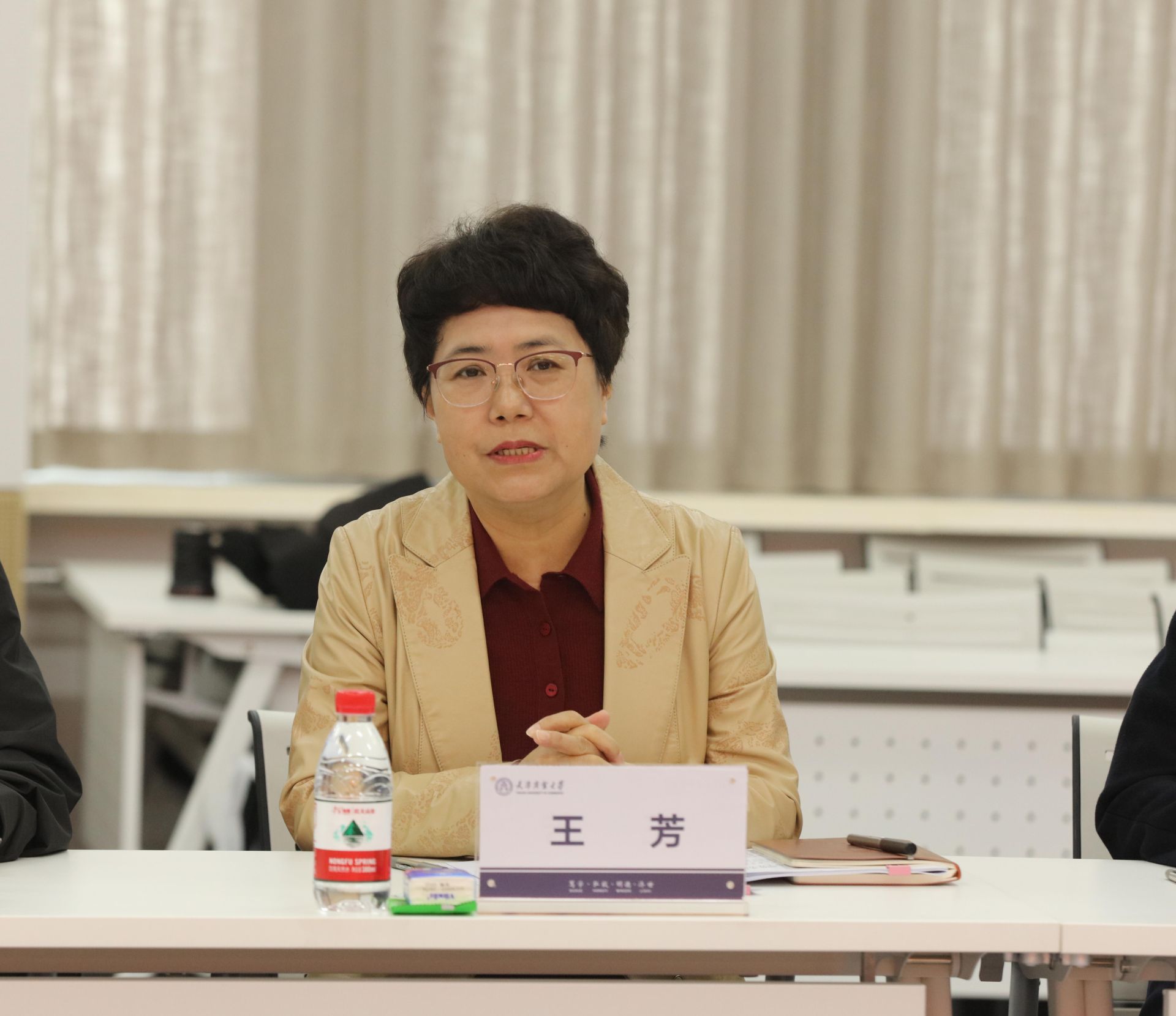 王芳表示,天商依商而建、因商而兴,经过几代天商人46载的接续奋斗、砥砺前行,由建校时的制冷和商业企业管理两个专业,发展成为如今拥有七大门类学科的多科性大学,取得了累累硕果。当看到服务“老字号”创新发展部分时,她表示,希望借助学校丰富的创新资源,助推北辰区老字号企业高质量发展。