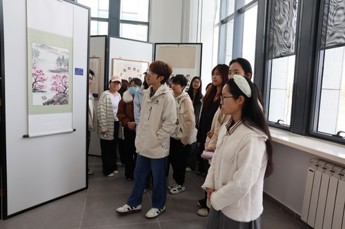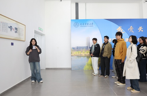 讲座前,与会师生参观了“我爱天津”王述祖先生津沽文化诗书影画作品展。