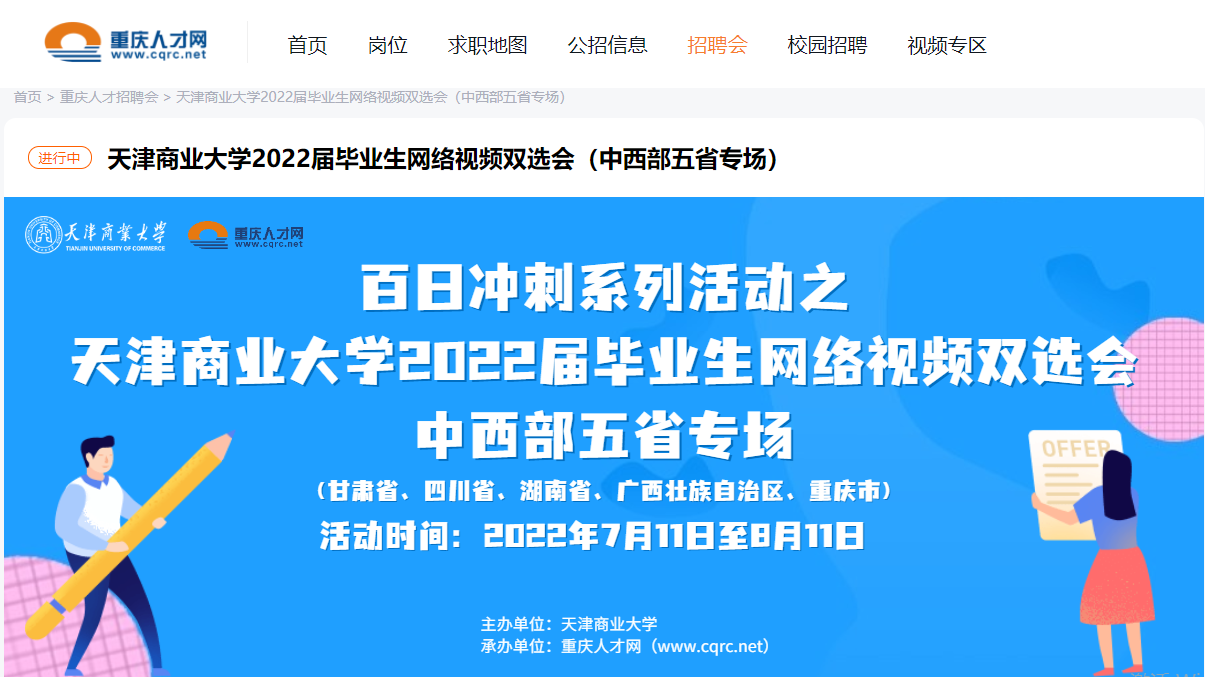 7月11日,学校与重庆人才网联合组织开展网络视频双选会,中西部百余家企业为毕业生提供就业岗位,开展线上招聘,本次活动为“百日冲刺”生源大省系列招聘活动之一,将在线上持续开展一个月。