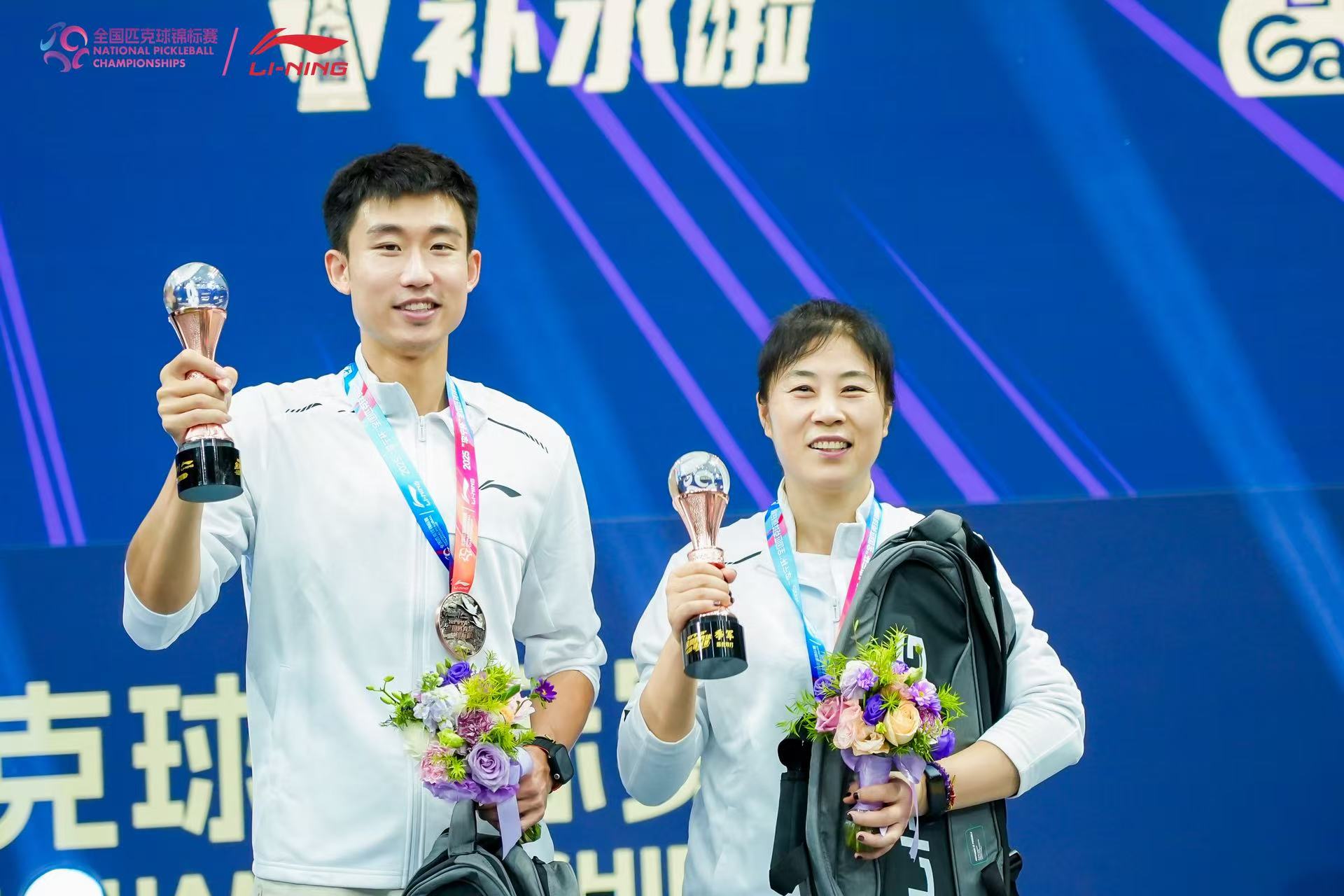 9月28日,2025“李宁杯”全国匹克球锦标赛在河南鹤壁圆满落幕。我校体育教学部程宁越、唐立慧两位教师组成的混双组合,代表天津代表队参赛,最终获得混合双打项目第三名的优异成绩。