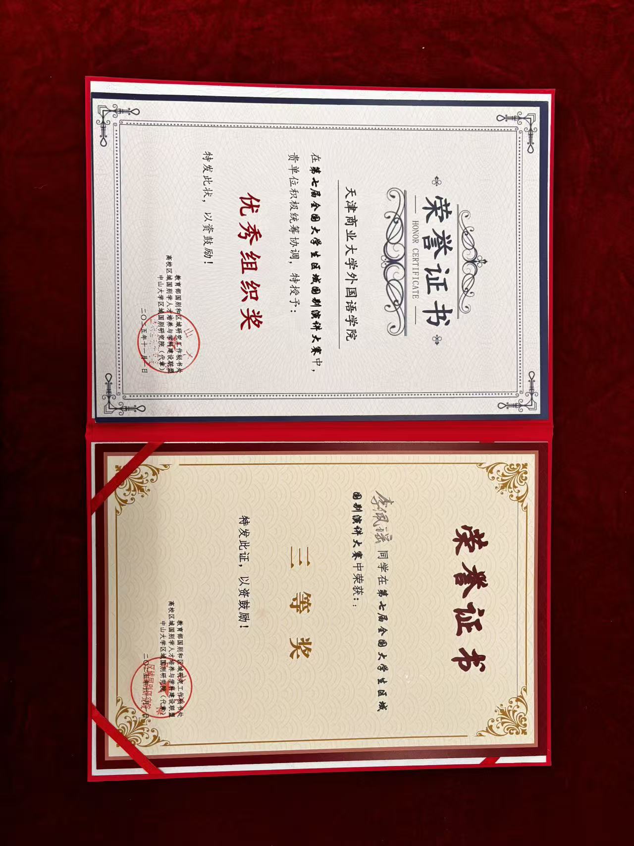在同期举办的全国大学生区域国别演讲大赛中,我校学子凭借扎实的专业素养、清晰的逻辑表达和深刻的主题阐释脱颖而出。我校共有5位同学入围全国复赛,其中李佩瑶同学成功晋级决赛,获得三等奖。我校外国语学院因组织工作有序荣获大赛“优秀组织奖”。