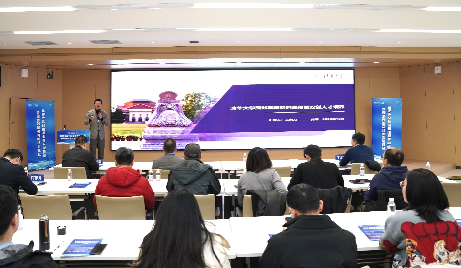 王大力带来“价值引领为魂,赛事赋能为翼,清华大学国创赛驱动的高质量双创人才培养”的主题演讲,他以“魂”与“翼”为比喻,强调双创教育应以价值引领为核心,以赛事赋能作支撑,从而确保方向正确、助力学生成长。张建勇进行“混沌启元:从-1到1的问道寻途——十步问道空中课堂百期凝萃”分享,其内容不仅体现了教学形式的创新,更是回归教育本真,为参与课程改革的教师提供了一套从课程重塑到平台构建的系统性方案,极具启发意义。李世杰带来“中国国际大学生创新大赛核心变量与建构”主题分享,抽丝剥茧般地分析了大赛的“核心变量”,从“评委视角”复盘与推演项目建构背后的逻辑闭环,揭示了备赛的关键要领,为教师们揭秘了大赛的“通关密码”。