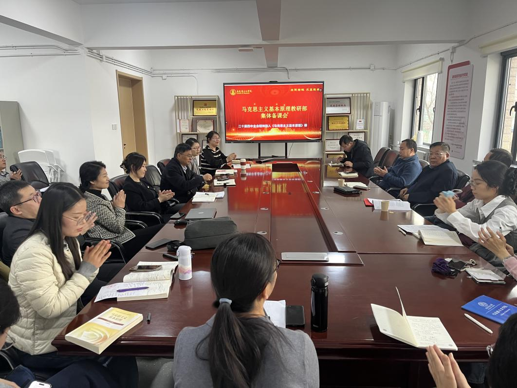 马克思主义学院始终将集体备课作为推进党的创新理论“及时学习、及时研讨、及时融入”思政课的关键机制,持续深化“备理念、备方法、备问题、备学生、备资源”的集体备课模式,着力构建从理论解析到课堂融入的完整传导链条,构建协同建设“大思政课”体制机制,不断提升思政课的针对性与吸引力,推动思政课建设与改革创新迈向更高水平。