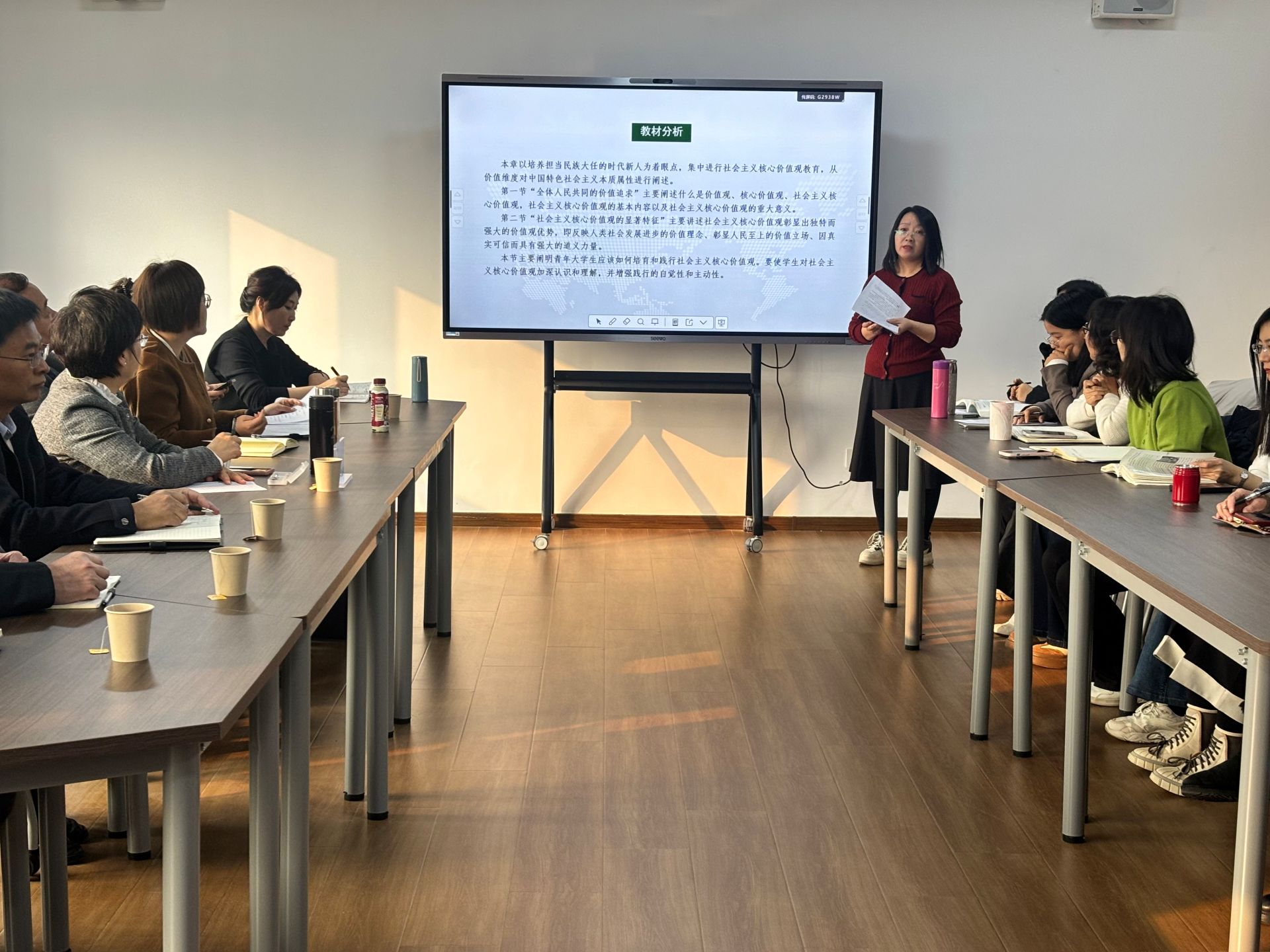 备课会上,备课会上,郭慧珍、张鹏两位教师分别以《扣好人生的扣子——积极践行社会主义核心价值观》《树立正确的生死观》为题进行主题示范课讲授。贺坤老师以“科学技术是第一生产力”为题进行专题说课,分享了以“中国共产党在指挥平津战役中取得胜利的关键因素”为主题的实践教学案例。