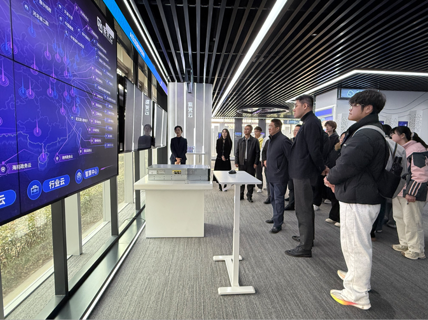 展示参观环节,企业工作人员通过实景演示、案例解析、技术展板等多种形式,全方位展示了公司在云计算、人工智能领域的核心技术实力,生动呈现了相关技术赋能政务、教育、制造等百行百业数字化转型的显著成效,让随行师生直观感受了前沿技术的产业应用场景,拓宽了行业认知视野。