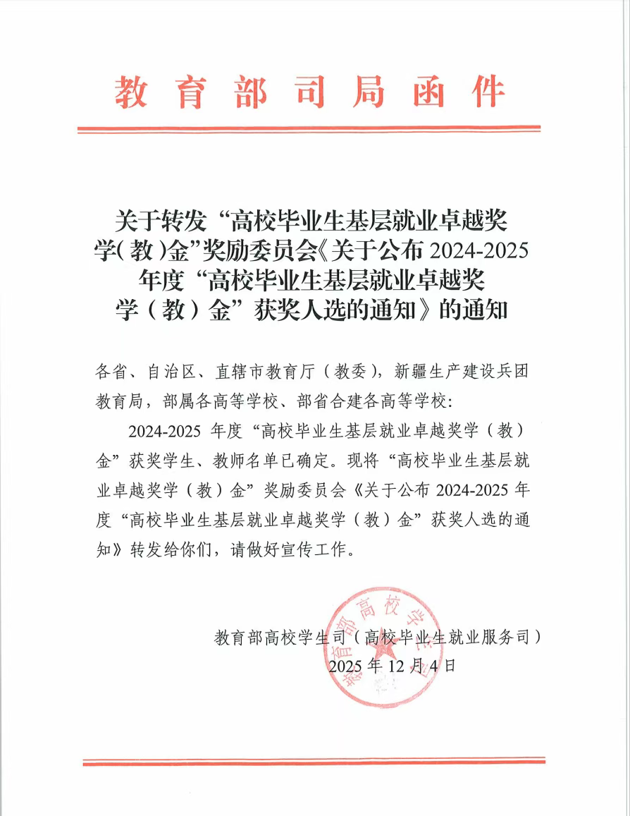 此项荣誉的蝉联,彰显了我校毕业生在基层就业领域的卓越表现与责任担当,体现了学校在培养学生服务社会、扎根基层方面取得的显著成效。今后,学校将持续秉承育人使命,自觉承担社会责任,持续深化基层就业工作,拓展服务形式,完善支持体系,努力向基层一线输送更多青年英才,为国家基层发展注入源源不断的动力。