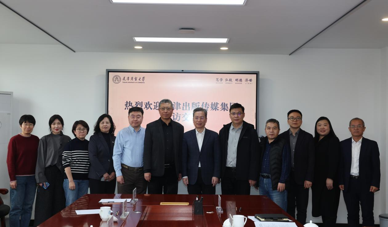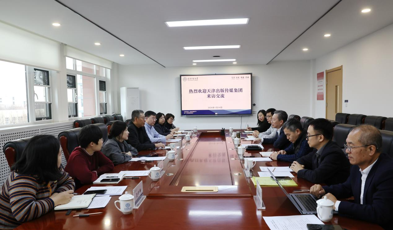 余江对天津出版传媒集团一行的到来表示热烈欢迎,并回顾了天津商业大学的发展历程与办学特色,重点介绍了学校区域国别研究院的目标定位、特色方向与发展规划。他表示,期待与天津出版传媒集团在学术出版、智库成果转化、资源共享与平台共建、高端学术活动举办及专业人才培养等方面,建立长期、稳定、深入的战略合作关系。