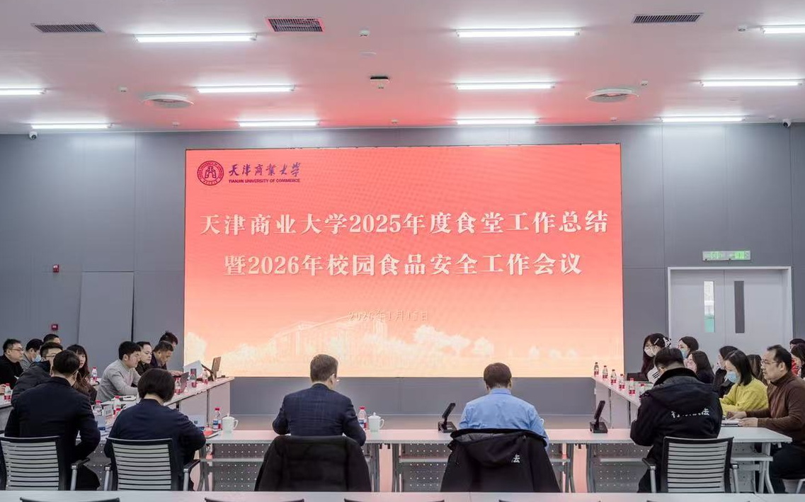 1月15日下午,学校2025年度食堂工作总结暨2026年校园食品安全工作会议在学术会议中心第三报告厅召开。副校长余江,驻校纪检监察组副组长孙郁,北辰区市场监督管理局副局长任志刚、食品安全监管科科长宋天水出席会议。后勤处膳食中心、食材配送中心、监管科管理人员,外包食堂承包企业负责人、项目经理、食品安全员,学生代表等40余人参加。