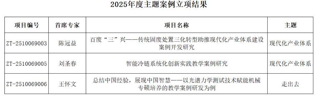 近日,教育部学位中心公布了2025年度主题案例立项结果,我校3项案例成功入选,实现新突破。此次立项充分展示了我校教师在专业学位案例开发与研究方面的扎实功底,也体现了学校在专业学位案例教学资源建设上的阶段性成效。