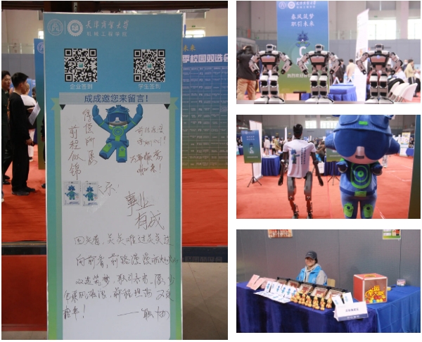 本次双选会共吸引来自北京、天津、山东、上海、江苏、浙江等10余个省市的112家优质企业参会,提供就业岗位1000余个,吸引千余名毕业生到场求职,累计投递简历3000余份。双选会现场设置政策领航・多维指路、求职护航・精准赋能、春招焕新・趣享好礼等功能服务区,为毕业生提供政策咨询、简历优化、面试指导等一站式就业服务。身穿印有学院logoT恤衫的具身智能机器人格外引人注目,吸引毕业生和企业代表纷纷合影留念。集赞兑换的非遗纪念品也给毕业生们留下了难忘的求职体验。