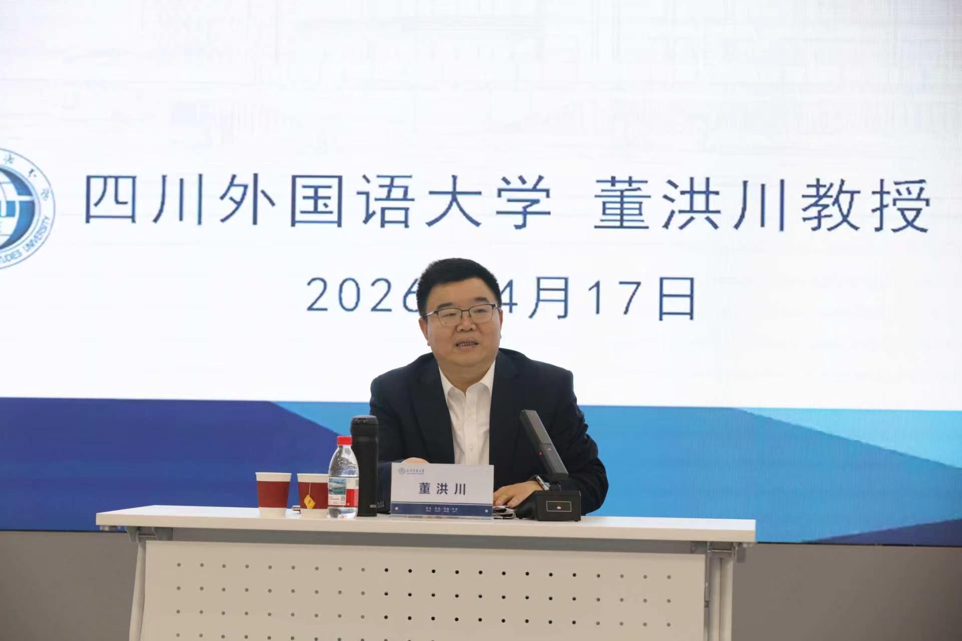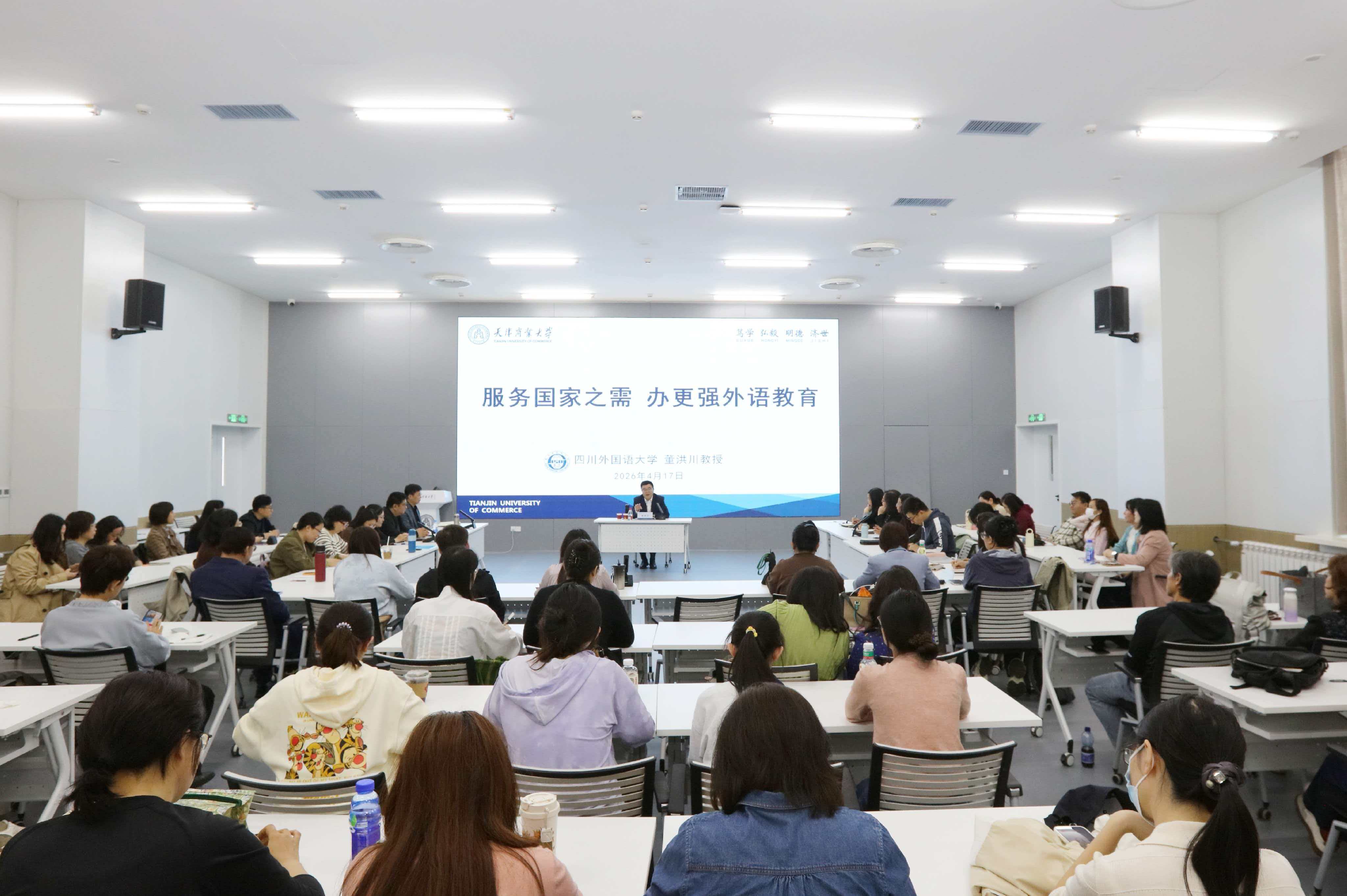 为深入贯彻新时代教育方针,落实立德树人根本任务,推动外语教育更好服务国家战略需求,4月17日,外国语学院特邀四川外国语大学董洪川教授,在学术会议中心第二报告厅作题为“服务国家之需、办更强外语教育”的专题讲座。讲座由外国语学院主要负责同志主持,学院全体教师及学生代表参加。