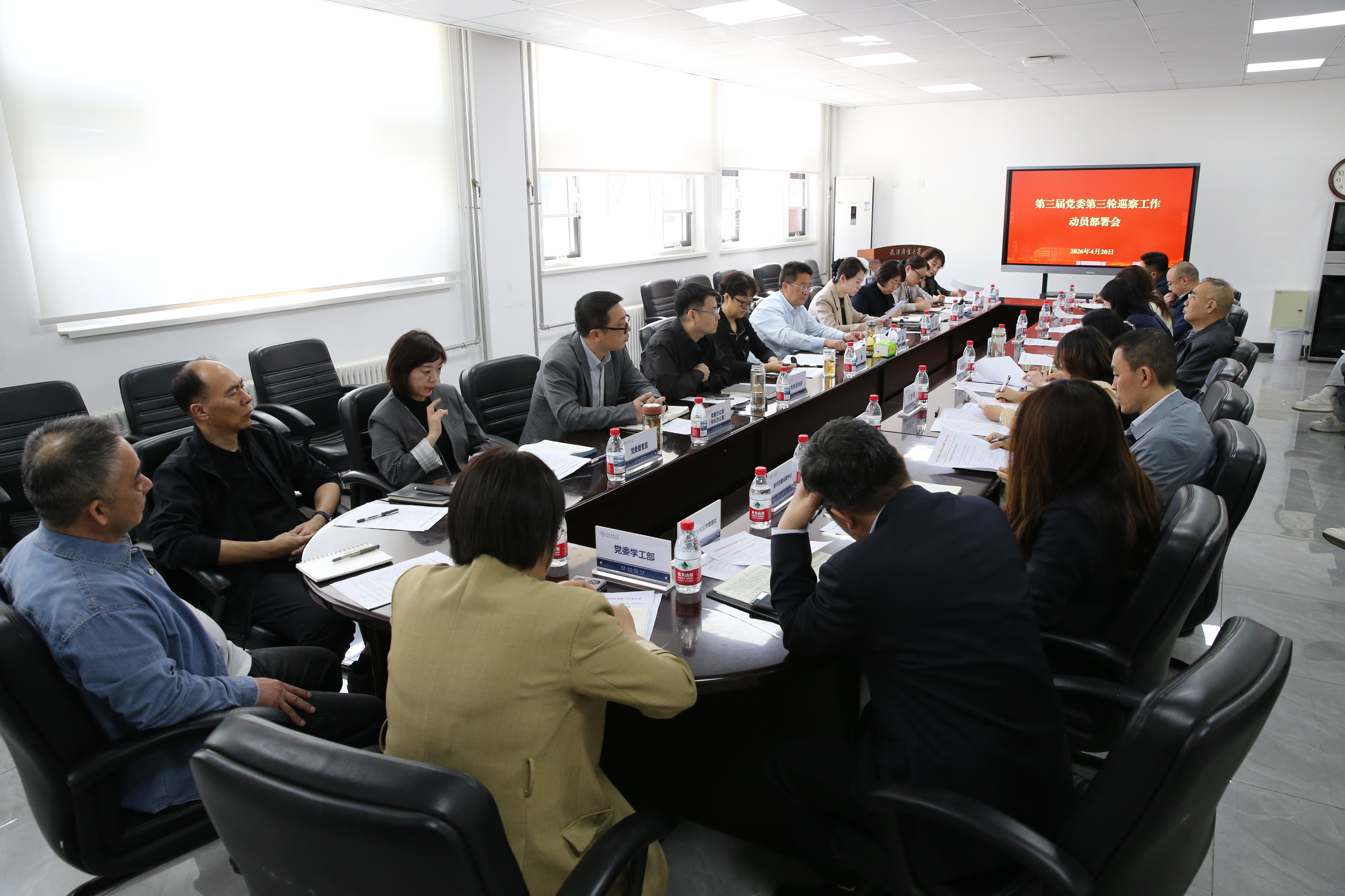4月20日下午,学校召开第三届党委第三轮巡察工作动员部署会。校党委副书记、巡察工作领导小组常务副组长崔强出席并讲话。派驻纪检监察组副组长传达学习习近平总书记关于巡视工作的重要讲话精神,全国巡视工作会议、市委常委会会议、十二届市委第六轮巡视工作动员部署会会议精神。党委组织部主要负责同志宣布第三届党委第三轮巡察组组长、副组长授权任职和任务分工决定。会议由党委巡察工作办公室主要负责同志主持。