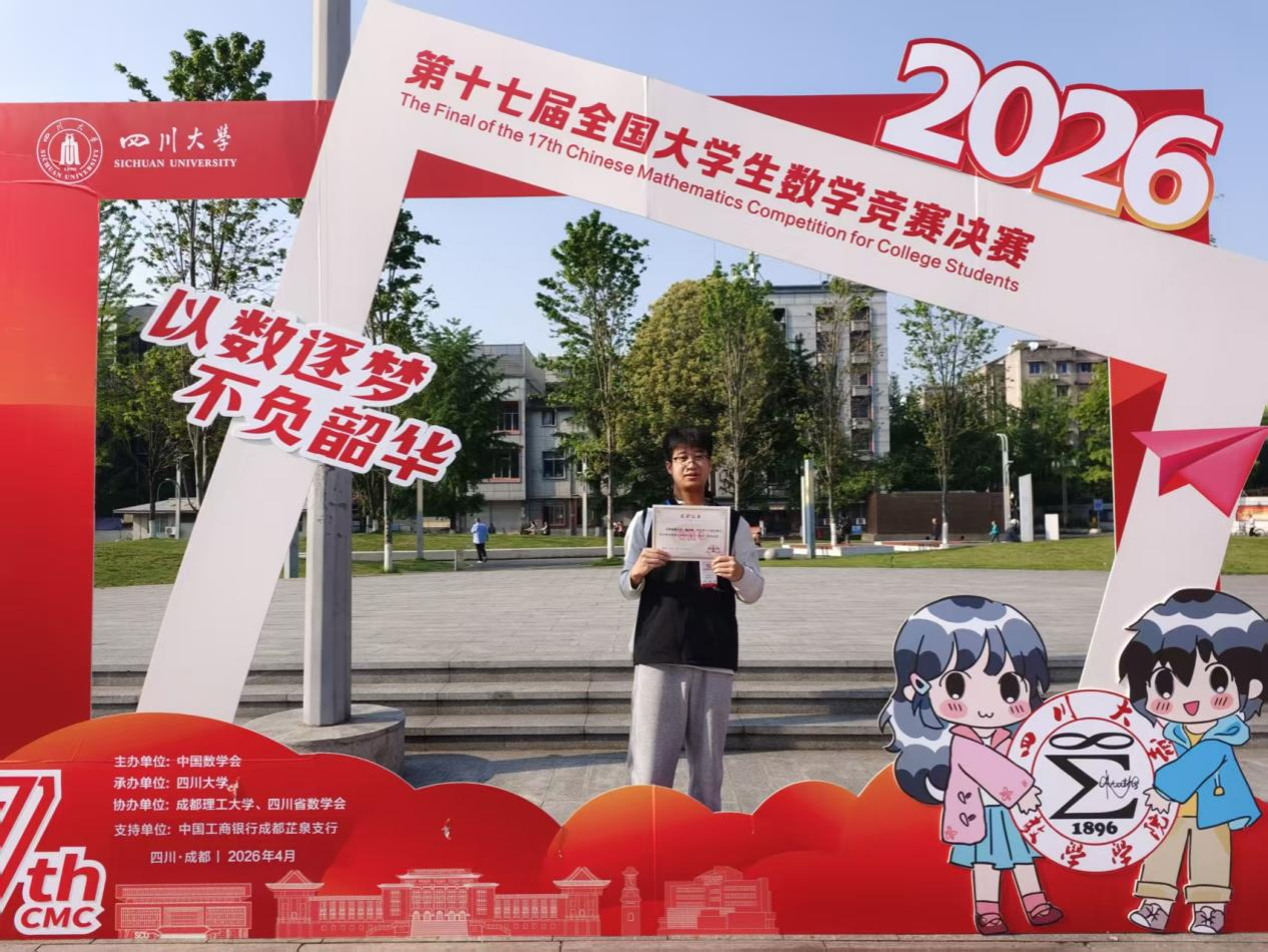 4月19日,由中国数学会主办的第十七届全国大学生数学竞赛决赛在四川成都圆满落幕。我校软件工程专业2022级本科生杨少帅同学,在理学院高等数学课程组教师的系统指导下,凭借扎实的数学功底与出色的临场发挥,荣获非数学A类二等奖。这是我校首次在该项赛事决赛中斩获殊荣,实现了学校在全国大学生数学竞赛决赛奖项上的“零的突破”。
